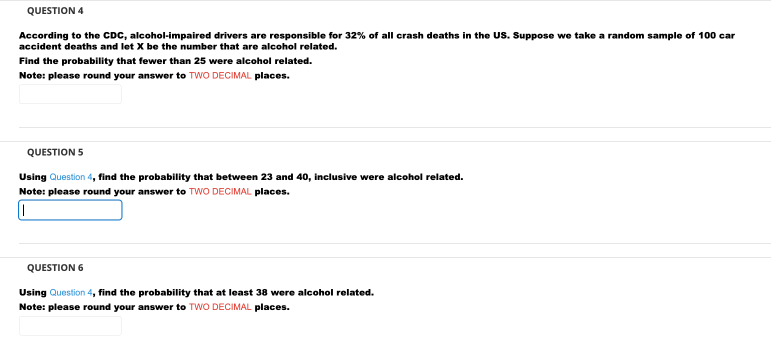 Solved QUESTION 4 According to the CDC, alcoholimpaired
